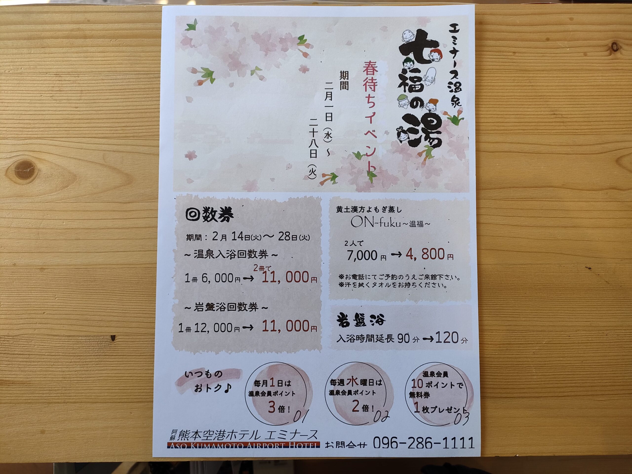 通常は、1冊6,000円の温泉回数券が2冊で11,000円。
